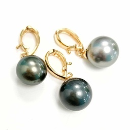 BOUCLES D'OREILLES TIGE ZIRCONS + perles de Tahiti - ARGENT
