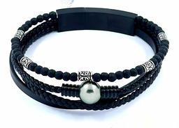 BRACELET HOMME FERMOIR ACIER PIERRE BRONZITE + PERLE GRAVEE